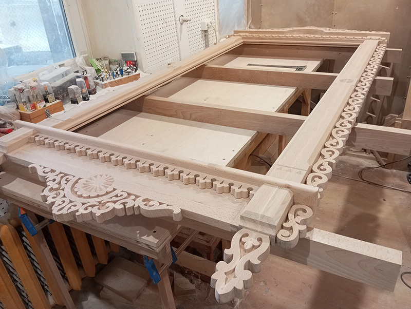 Производимые столярные изделия также разнообразны: рамы для зеркал, обрамление порталов и дверей, пилястры, массивные карнизы для каминов, резные наличники для украшения окон домов.