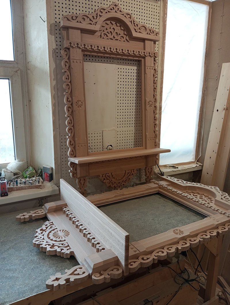 Производимые столярные изделия также разнообразны: рамы для зеркал, обрамление порталов и дверей, пилястры, массивные карнизы для каминов, резные наличники для украшения окон домов.
